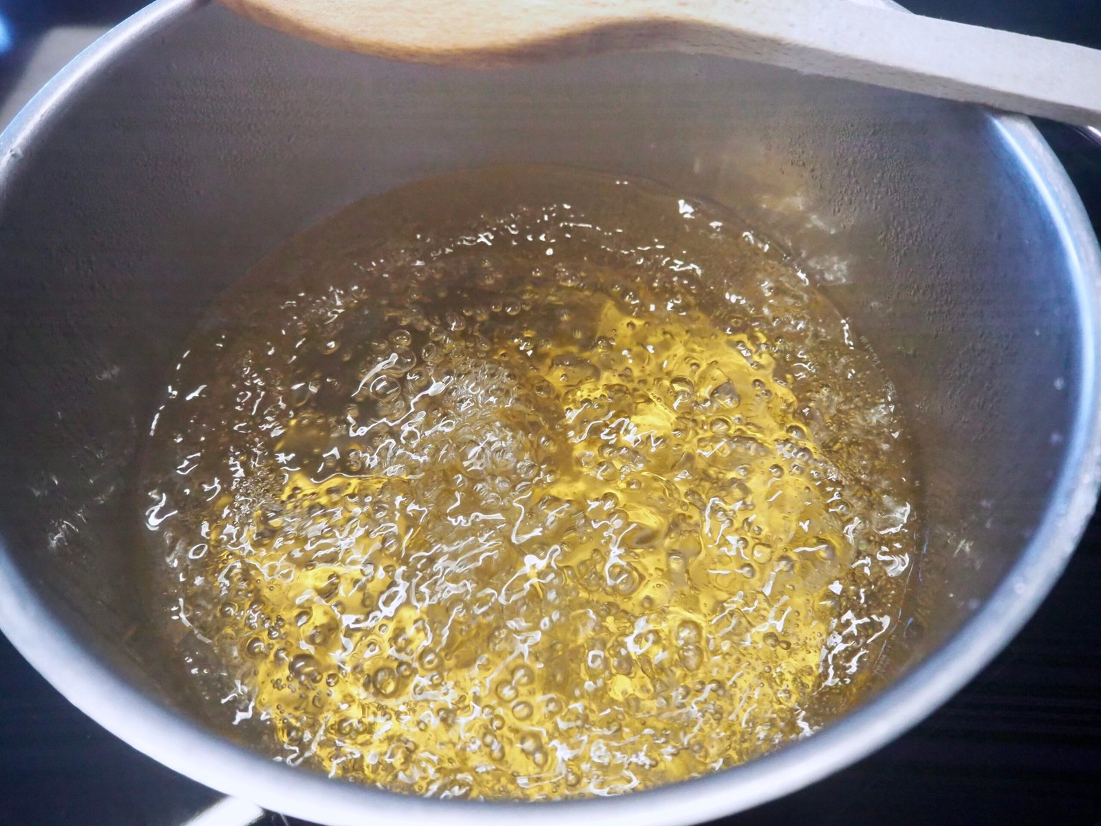Zusammen mit der Zitronensäure kommt es in einen Topf und wird mit kochendem Wasser übergossen.
