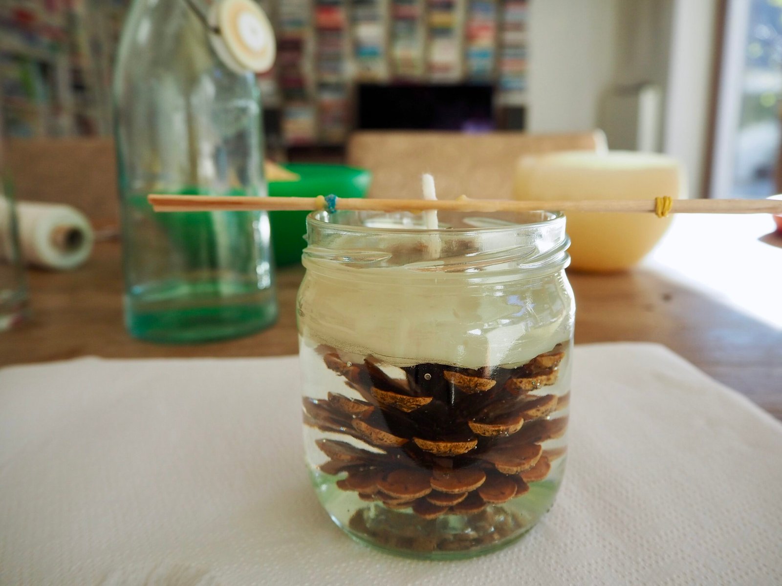 Nun warten wir nur noch, bis das Wachs getrocknet ist und kürzen dann den Docht. Fertig!